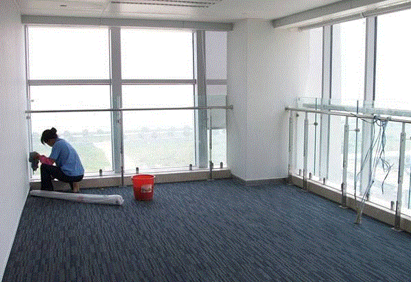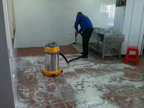 6、 地面的清洗:着重处理开荒遗留下的漆点、胶点等污渍,后用高温蒸汽清洗机对地面进行高温消毒,后推牵尘油(起防尘作用)。